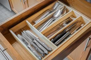 This air-conditioned one-bedroom apartment includes a living area with a sofa bed and a flat-screen TV. Guests have access to a dining area and a fully equipped kitchen featuring an oven, stovetop, refrigerator, dishwasher, toaster, and wine glasses. The bathroom offers both a bathtub and shower along with towels and soap.