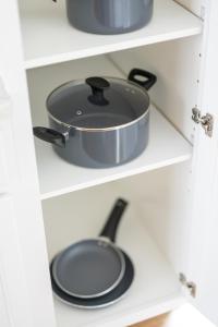The accommodation offers access to a terrace with city views along with soundproof walls for added privacy. Additional comforts include heating throughout the building, non-feather pillows on three beds across two bedrooms plus one crib available in the unit. Housekeeping services are arranged through an external company while fire extinguishers ensure safety on-site. The property welcomes pets and supports contactless check-in and check-out.