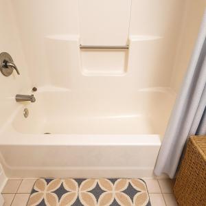 The bathroom offers both a bath and shower along with soap provided as part of the bathroom amenities. Additional comforts include heating throughout the unit as well as air conditioning for climate control. A clothes rack is available near the entryway for convenience.